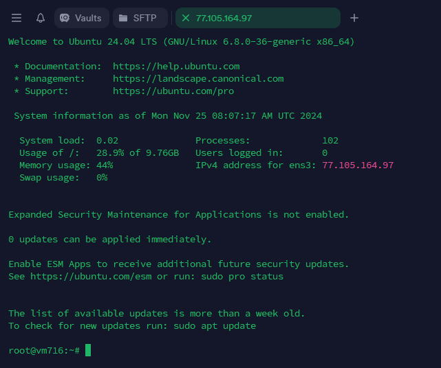 Готово! Мы попали на сервер и можем начинать свою работу.